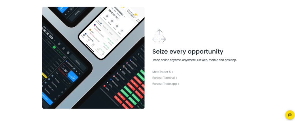 Additionally, Exness offers a variety of trading platforms to suit different trader preferences. These include the industry-standard MetaTrader 4 (MT4) and MetaTrader 5 (MT5) platforms, which are available on desktop, web, and mobile devices. Both platforms are known for their robust charting tools, automated trading capabilities, and wide range of technical indicators, making them a preferred choice for professional traders.